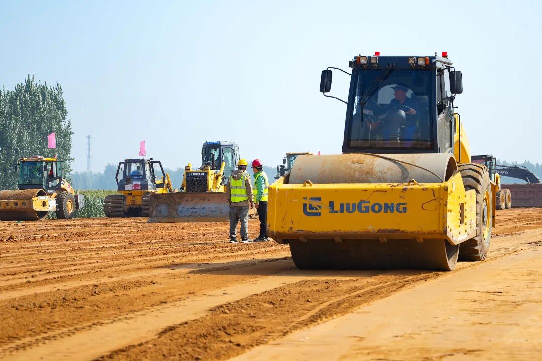 路基之旁,碾压车辆的往复轰鸣:在路基填筑区,巨大的振动压路机和轮胎压路机正在司机的精准操控下,进行着有序的碾压作业。它们来回穿梭,发出沉重的轰鸣,将新填筑的土石料一层层压实、碾平。施工人员紧跟其后,进行压实度检测,确保每一寸路基都坚实可靠,足以承载未来川流不息的车流。