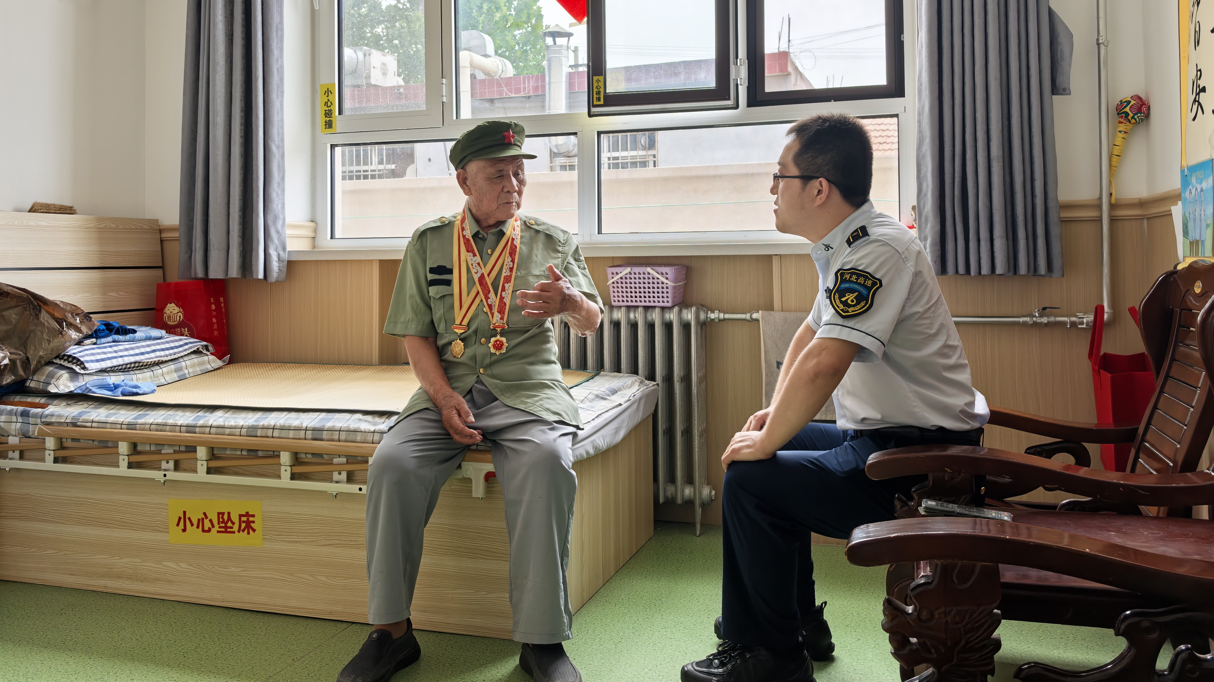 活动中,收费站的工作人员们带着精心准备的慰问品,与光荣院的抗战老战士韩福光亲切交谈。老人虽已96岁高龄,但谈起当年参加过的辽沈战役、平津战役、抗美援朝的抗战经历,眼神中依旧闪烁着坚毅的光芒。他用朴实而有力的话语,讲述着烽火岁月里浴血奋战、保家卫国的真实故事——从枪林弹雨的正面战场到敌后游击战的机智周旋,从战友间的生死相托到对和平的深切渴望,每一个细节都震撼着在场的每一个人。